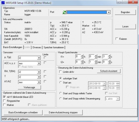 • Erweitertes Logging mit einstellbaren Intervallen pro Sensor (je nach Sensortyp min. 10/50 Hz oder 1s) und zwei unabhängige Zeitintervalle