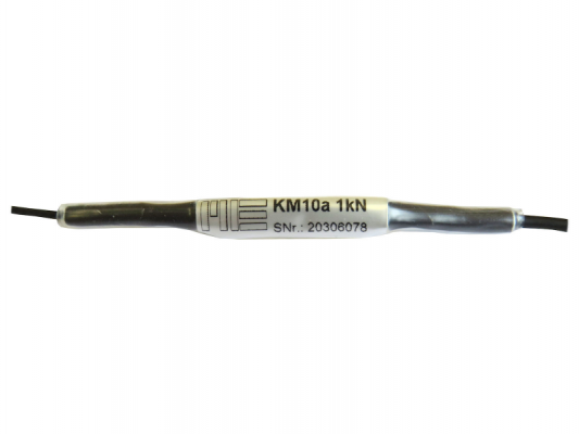 Der KM10a ist ein Membran-Kraftsensor in Ultraminiatur-Ausführung. Diese Kraftmessdose dient der Kraftmessung in Druckrichtung. Ähnlich wie beim KM10 erfolgt die Krafteinleitung über die Kalotte (Durchmesser 3mm, R10) im Zentrum des Sensors. Bei dem Sensor KM10a ist die Aufstandsfläche geschliffen, um Linearität und Reproduzierbarkeit in den Grenzen von 1% vom Istwert zu erzielen. Für eine geringere Temperaturdrift im Vergleich zum Kraftsensor KM10 sorgt außerdem die im Kabel eingebaute Abgleichplatine (7mm x 75mm x 4mm). Die Abgleichplatine enthält temperaturabhängige Widerstände zum Abgleich der temperaturbedingten Drift 0,01%/K. Die Abgleichplatine sollte daher etwa den gleichen und enthält Abgleichelemente für den temperaturbedingten Drift.