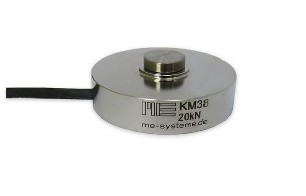 Der Miniatur-Kraftsensor KM38 eignet sich wegen seiner flachen Bauform und seiner Durchgangsbohrung hervorragend zur Messung der Vorspannkraft von Schrauben. Die Durchgangsbohrung 7mm eignet sich aber auch zum Einsetzen einer Krafteinleitung. Mit einer Kalotte wird die zentrische und querkraftfreieKrafteinleitung realisiert. Durch Einsetzen von Halbschalen oder Prismen wird eine Anpassung dieser Kraftsensoren für die Messung von Walzenkräften erzielt. Die drei Gewinde M2,5 an der Unterseite erlauben die Befestigung des Sensors.