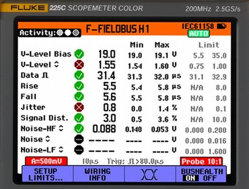 - Busanalyse Funktion für Kontrolle der Signalqualität an Bussystemen wie AS-i, CAN, Modbus (RS-232, RS-485), Fieldbus (H1), Profibus (DP, PA), Ethernet (bis 100BaseT), RS232, RS485